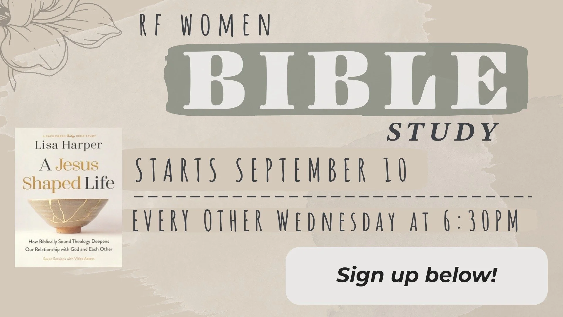 This seven-week Bible study by Lisa Harper, titled A Jesus-Shaped Life, is your invitation to explore the depths of God's character, God's love for you, and how your relationship with Him transforms you. Ultimately, you will experience how biblically sound theology deepens your relationship with God and each other. USE THE SIGN UP FORM BELOW!